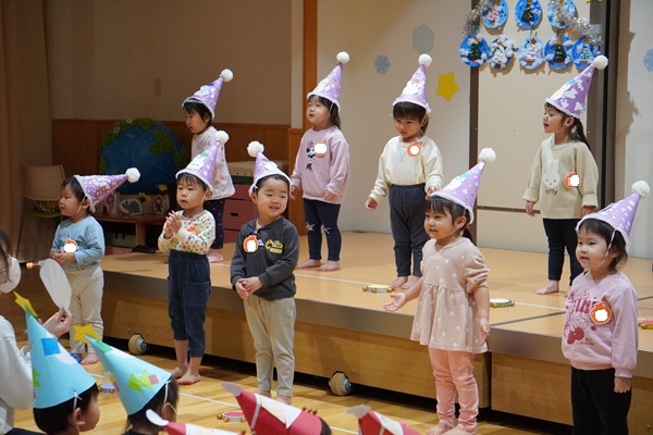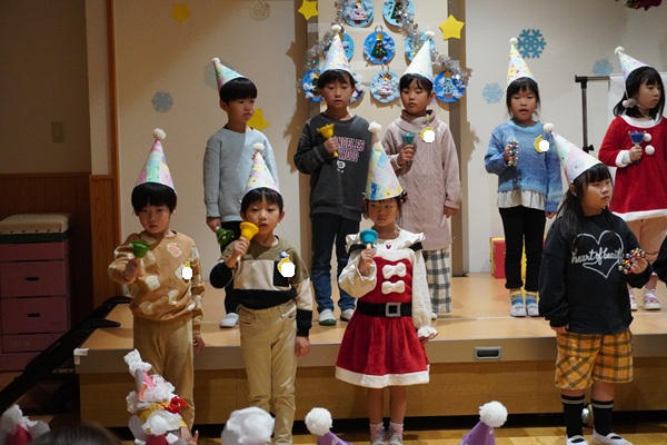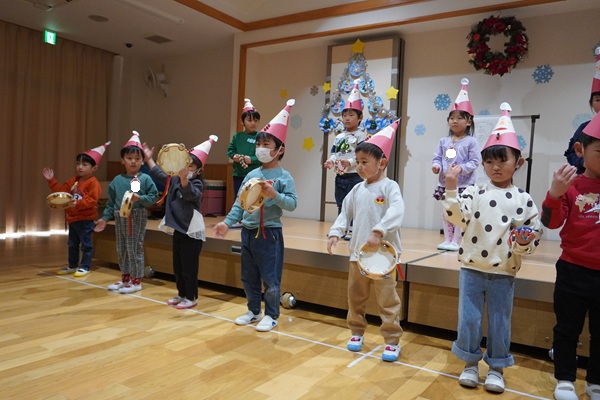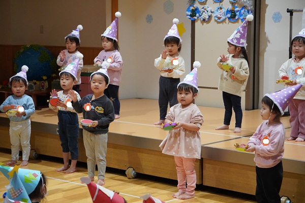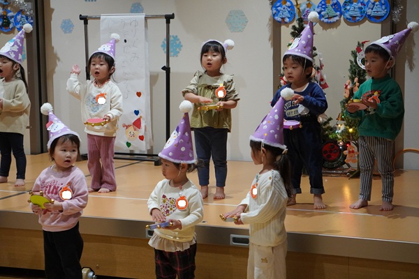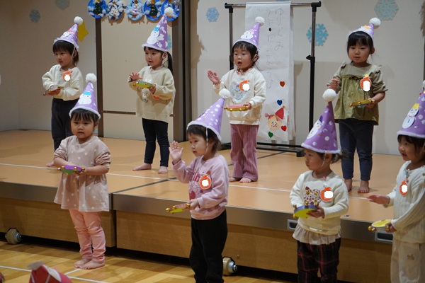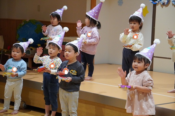すみれ組さん「おもちゃのチャチャチャ」手作りマラカスで